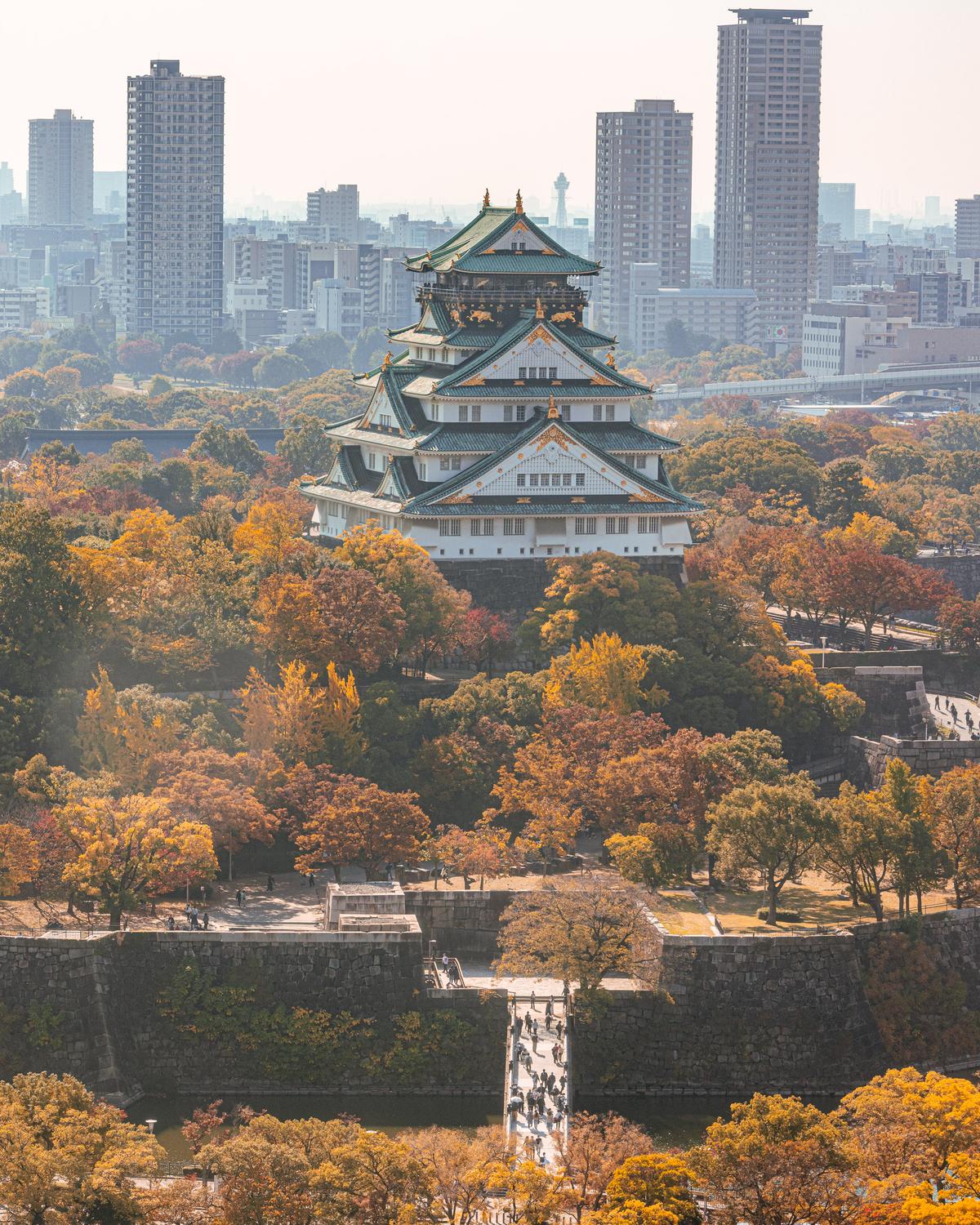 今年も紅葉の季節がやってきました! 家から自転車で行けるので、ランチの時間に大阪城の紅葉を見に行ってきました。 去年は歴史博物館から撮影しましたが、今年は別の高層ビルから撮影しました。 今回は屋内のため三脚は使わず、手持ちで撮影しています。 まず50mmで撮影した写真です。 次に105mmでアップで撮影した写真です。 分厚い窓ガラスのせいで少しソフトフィルターをつけたみたいになりましたが、紅葉の眺めはとても良かったです。